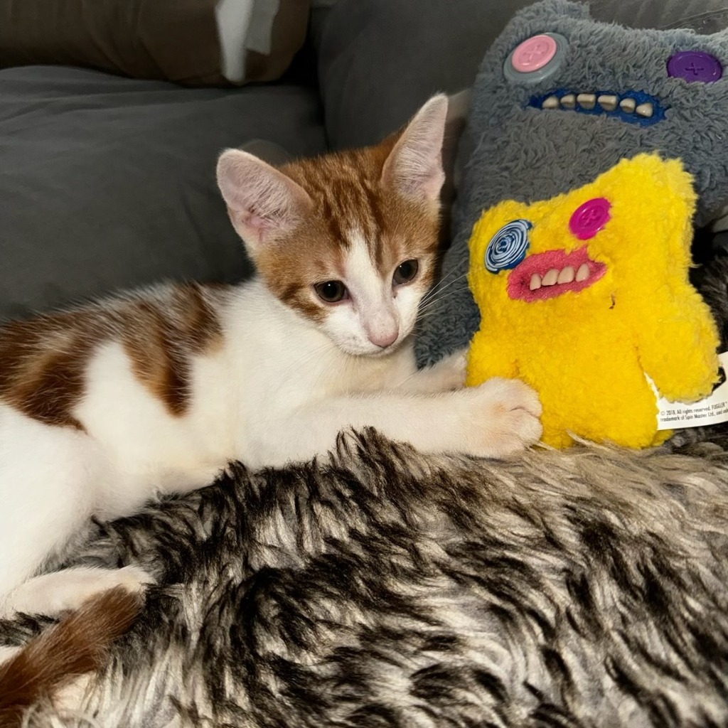 Hey there! I’m Titus and I’m a fun ball of energy! I love running around doing zoomies and jumping up and down to get all my wriggles out. Then I like to lay down in your lap which is my favourite place. I’m verrrry affectionate and like to be close to you for cuddles. I also love playtime with my toys and playing with other cats. I already know where to go to the toilet and how to have lots of fun! Now all I need is a home.