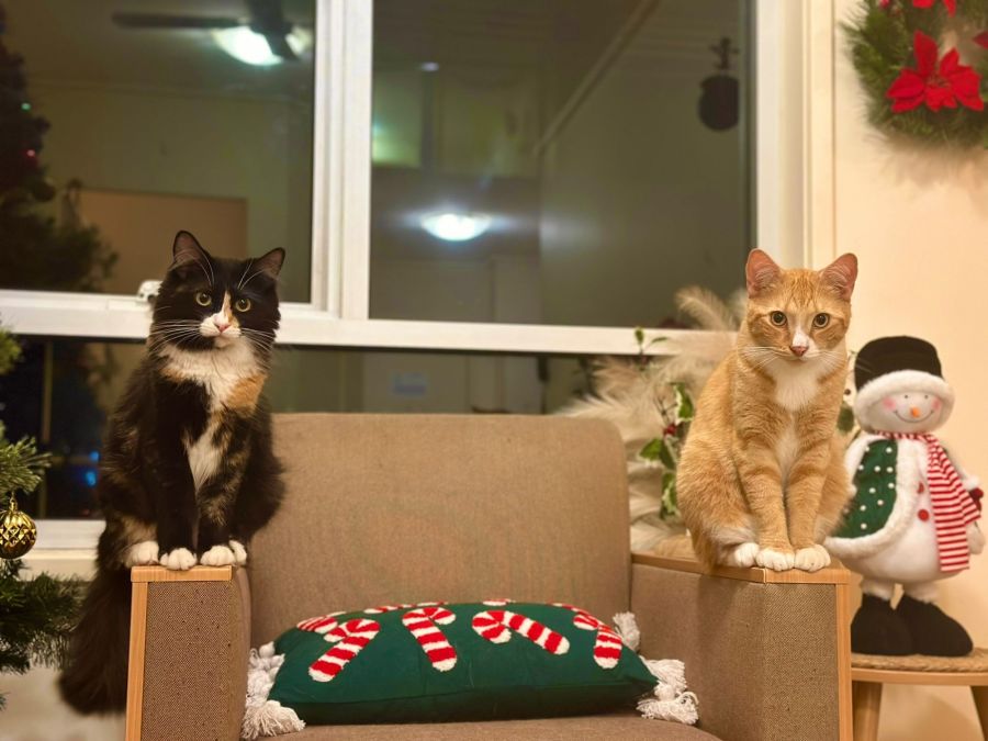 On the other hand, Snoop exudes a serene and loving character. This calm kitty finds happiness in simple comforts like snuggling on your legs or seeking warmth nestled in your arms. Always at your side, he enjoys following you wherever you go, making you feel loved and cherished at all times. Snoop finds enjoyment in serene moments spent gazing out the window, and like her sibling Biggie, he also savors wet cat food. And don't worry if you ever forget her mealtime; he'll make sure to remind you!