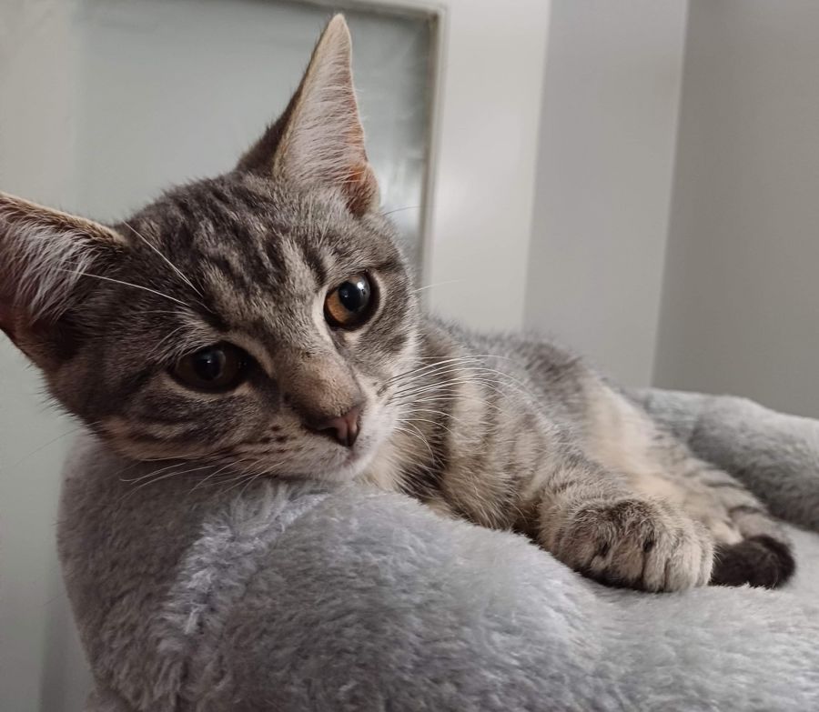 He's currently in care with his siblings (also available for adoption) and they have hours of fun together. Their favourite game is chasing a ball around in the empty bathtub.