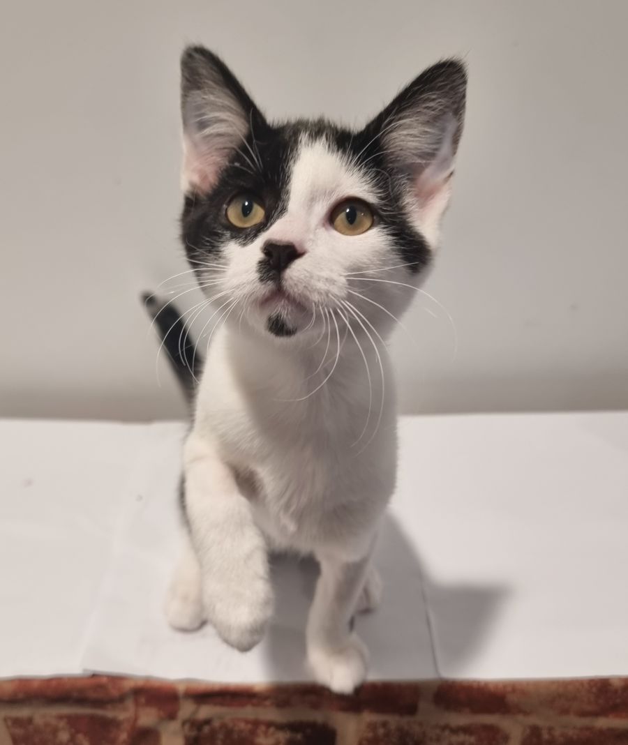 The first thing I do when I see a person is Purrrrrrr! The Vet staff have given my brother and I lots of cuddles and socialisation and they say we are growing up to be the best cats. I think they will miss us when we find a home.
