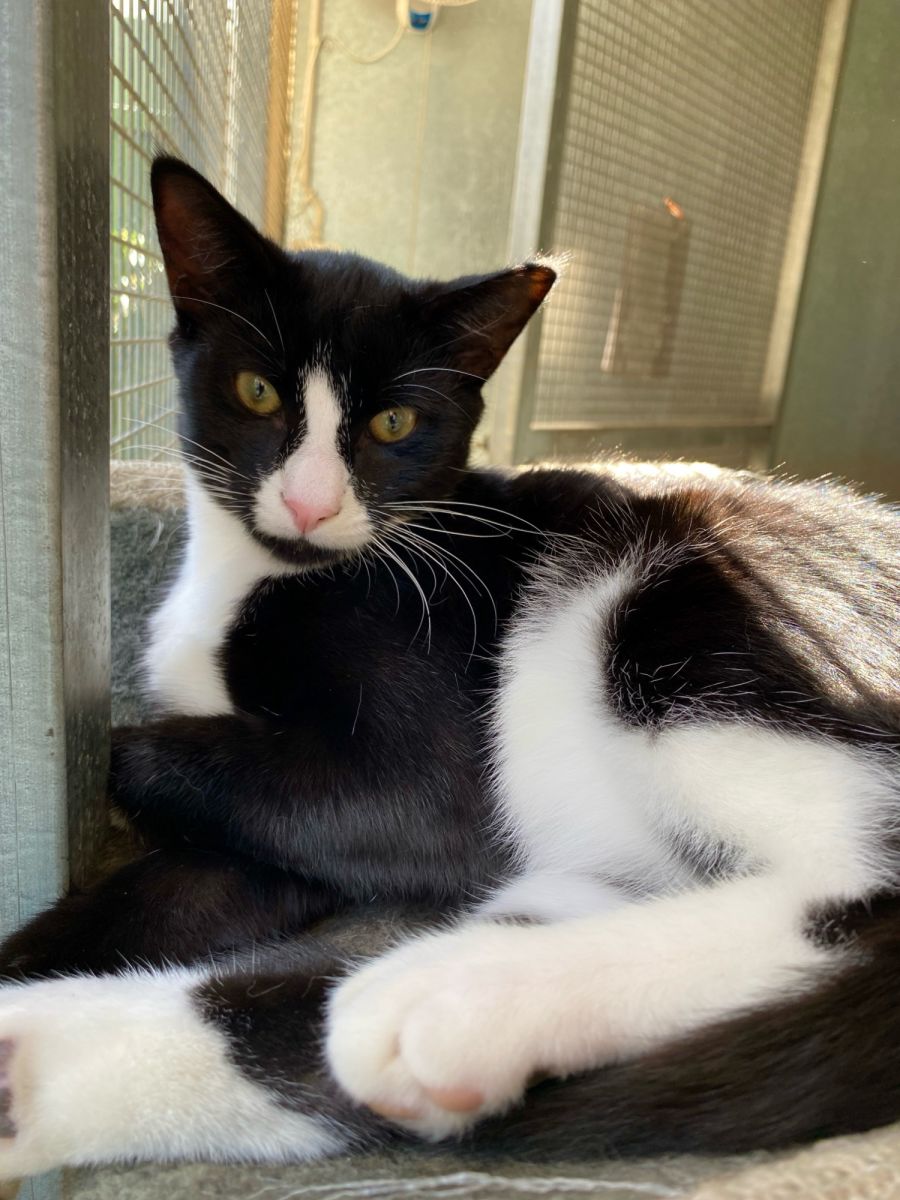 Meet Scamp, a tender-hearted feline companion with a shy demeanor. He may be a bit wary at first, but once he warms up, his gentle personality shines through. At 6 months old, Scamp is at an ideal age for forming lasting bonds with his new family.