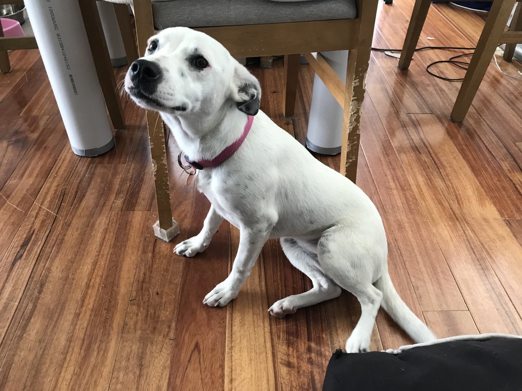 Zena is a very sweet little dog. She is extremely affectionate with her people and really just longs to be someone's special companion. She gets along with other smallish dogs but is untested with larger ones. We think so long as the larger dog was gentle, she would be fine. She is being fostered with cats and came from a home with cats. She keeps a respectable distance from them and is certainly not reactive. Zena has quite a combination of breeds (as reported to us) but she has certainly taken more so after her mother who was reported to be a Border Collie x Pomeranian. She has learnt to walk on a lead and will sit when asked. She sleeps overnight in a crate. She has learnt a lot about the world since coming into foster care and has really enjoyed getting out and about. Recently she attended a country show and even put in an appearance at our information stall. She really takes on these new experiences with interest, so long as she has a bit of reassurance from her foster parents. Zena is looking for a full time human companion who can continue to teach her about the world and extend her basic training. It is important to note ... the damage to the chair legs as can be seen in the photo was not done by Miss Zena, but a previous foster dog ... she is innocent!
