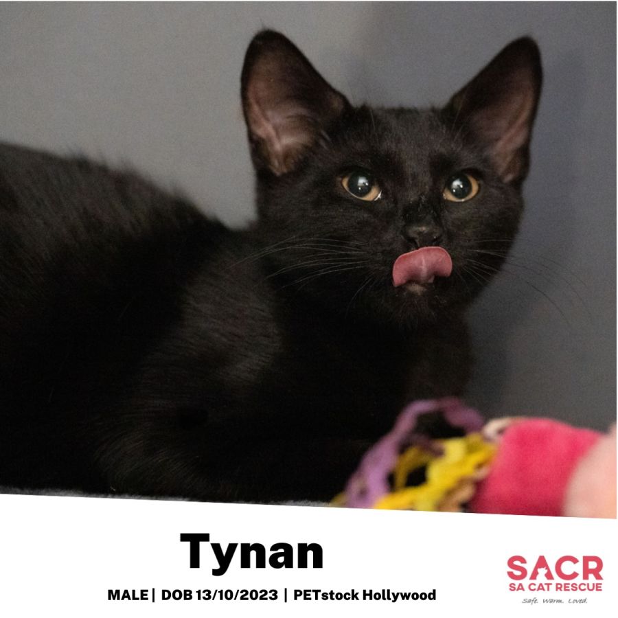 Tynanโs adoption fee is $180 which includes desexing, microchipping, parasite prevention, and initial F3 vaccination.