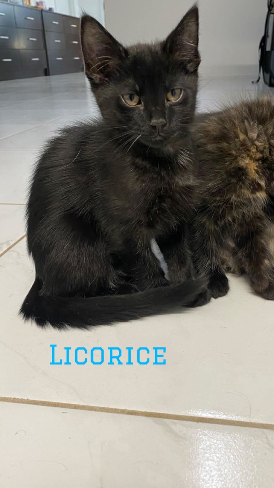 In summary, Licorice is ready to bring joy, warmth, and entertaining companionship to a new family. This friendly little kitten is just waiting to share his playful antics and heartwarming purrs with you. Don’t you want a little Licorice in your life?