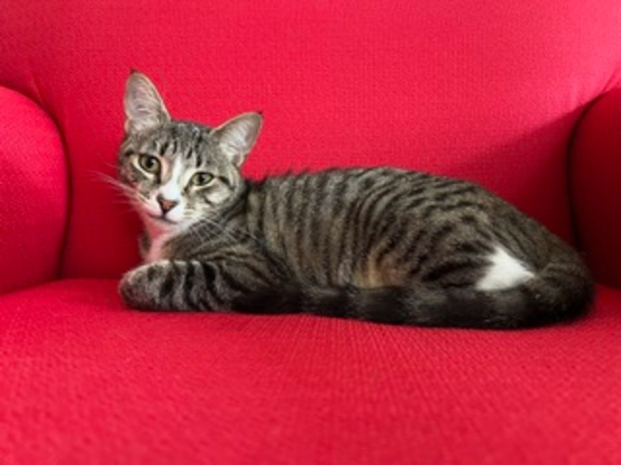 Introducing Bunny, the sweetest and smartest feline who is seeking her next adventure. With her charming, loving, and affectionate personality, she effortlessly wins over hearts. Bunny has a fascination with learning, showcased in her adept understanding of toys and their playful utility along with recognizing and responding positively to simple commands like "No".