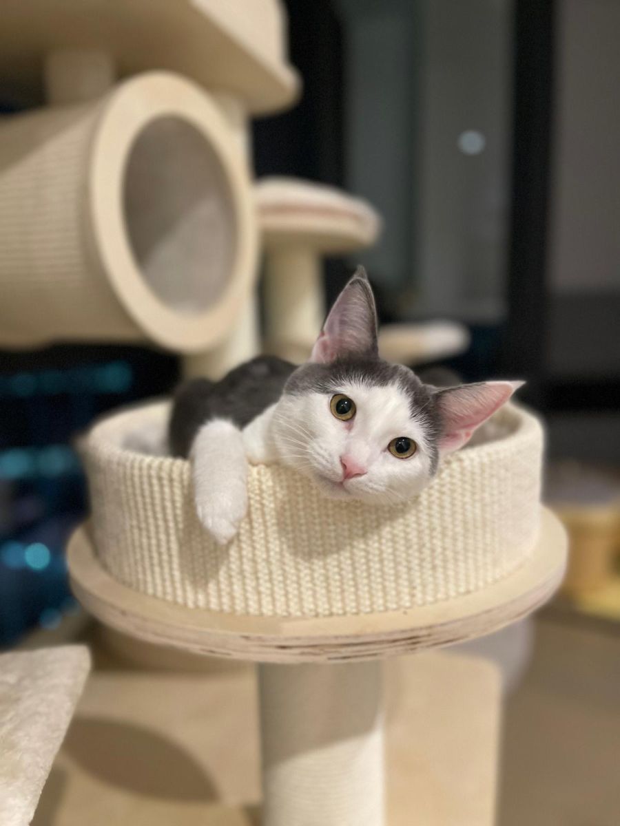 Meet Albie, a super athletic, and active male cat who loves turning life into a playful adventure. His show-stopping flips during playtime will thrill and delight you. Albie's limber and lithe body makes him quite the acrobat, whether he's playing or merely navigating his way around his domain.