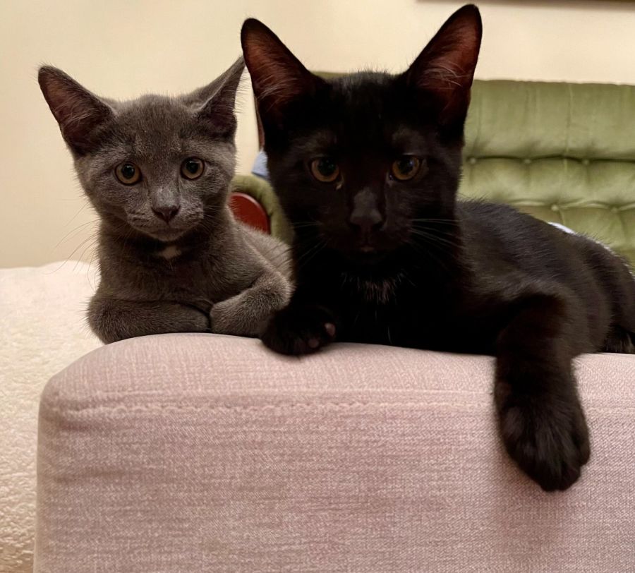 Smokey (grey) and Kobe (black) are a bonded pair of 3 months old kittens who came into our care a month ago.