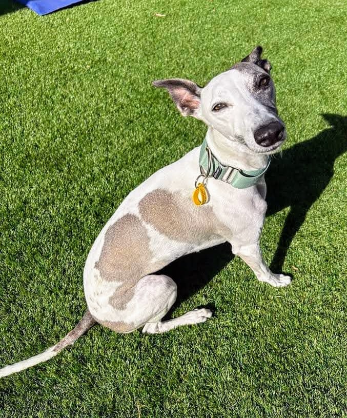 Though mostly toilet trained, Lily still requires assistance and praise at night. She has basic commands, walks well on a lead, and is making progress with her recall though this area still needs much work. Her speedy limbs are built for running and running she loves, so it is important to ensure she develops a bond with her human and increases her training to allow her opportunities to run off lead in the future.