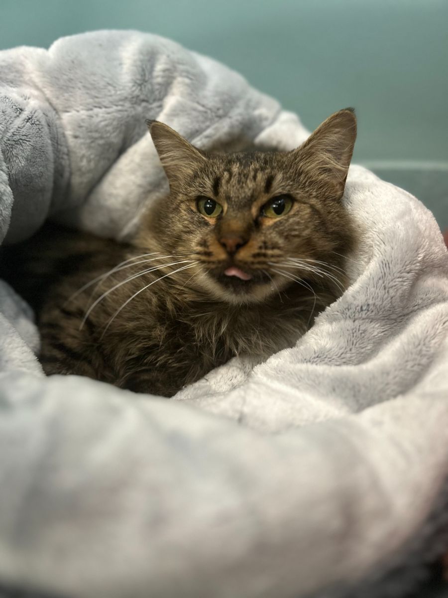 Meet Rain, a delightfully sweet feline who is eager to find a welcoming and relaxing home. Rain has had a challenging journey, but don't let that fool you - she's resilient and full of love to give. Rain also has the best tongue blep!