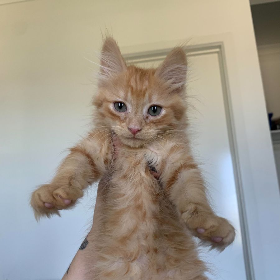 He has a beautiful coat and will grow up to be a medium to long haired cat, so some ongoing brushing will be required!