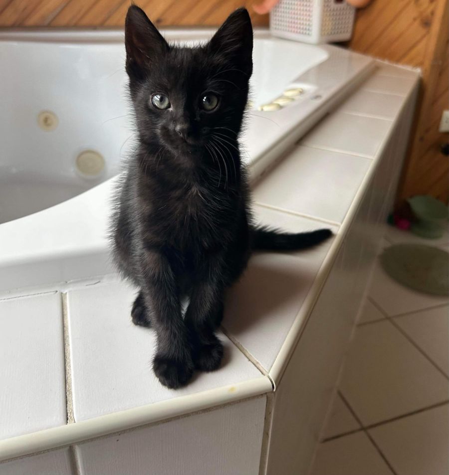 Midnight will happily play and sleep alone, but he would also love the company of other cats,kids,humans and even dogs because they’re more scared of him than he is of them.😉