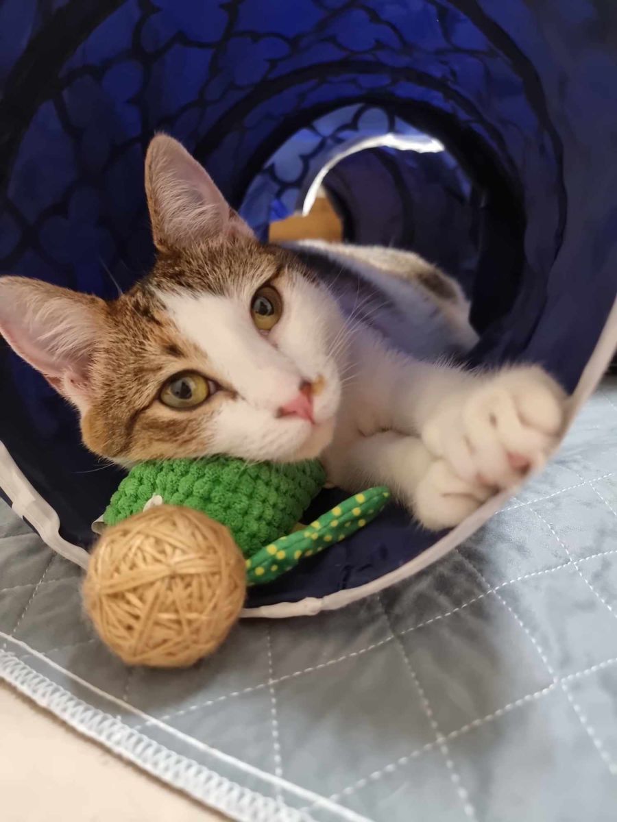 It should be noted that Tiger Lilly appreciates her independence and has her own unique way of showing affection. Unlike some cats, she prefers to dictate when and how she receives attention and can exhibit some patting aggression if things aren't on her terms. This makes her an ideal companion for someone who appreciates a cat with a real personality, someone who enjoys the highs of interactive games and respects her need for space at times.