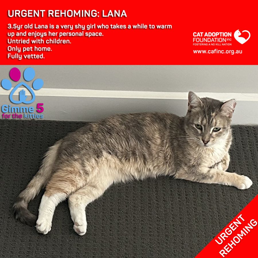 Donate to Lana Private Rehoming No Charge! at Cat Adoption Foundation Incorporated via Shout