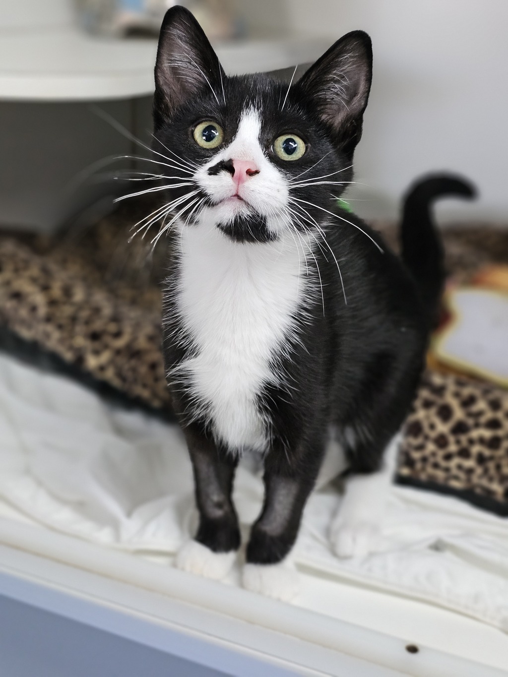 Hey there, I'm Saxophone. I'm a friendly and affectionate kitten who would suit most homes! My playful paws are always ready to pounce on anything that moves. I love playing with wand toys and mysterious shadows on the wall! When I'm finished playing, I love nothing more than finding a warm lap to curl up in.