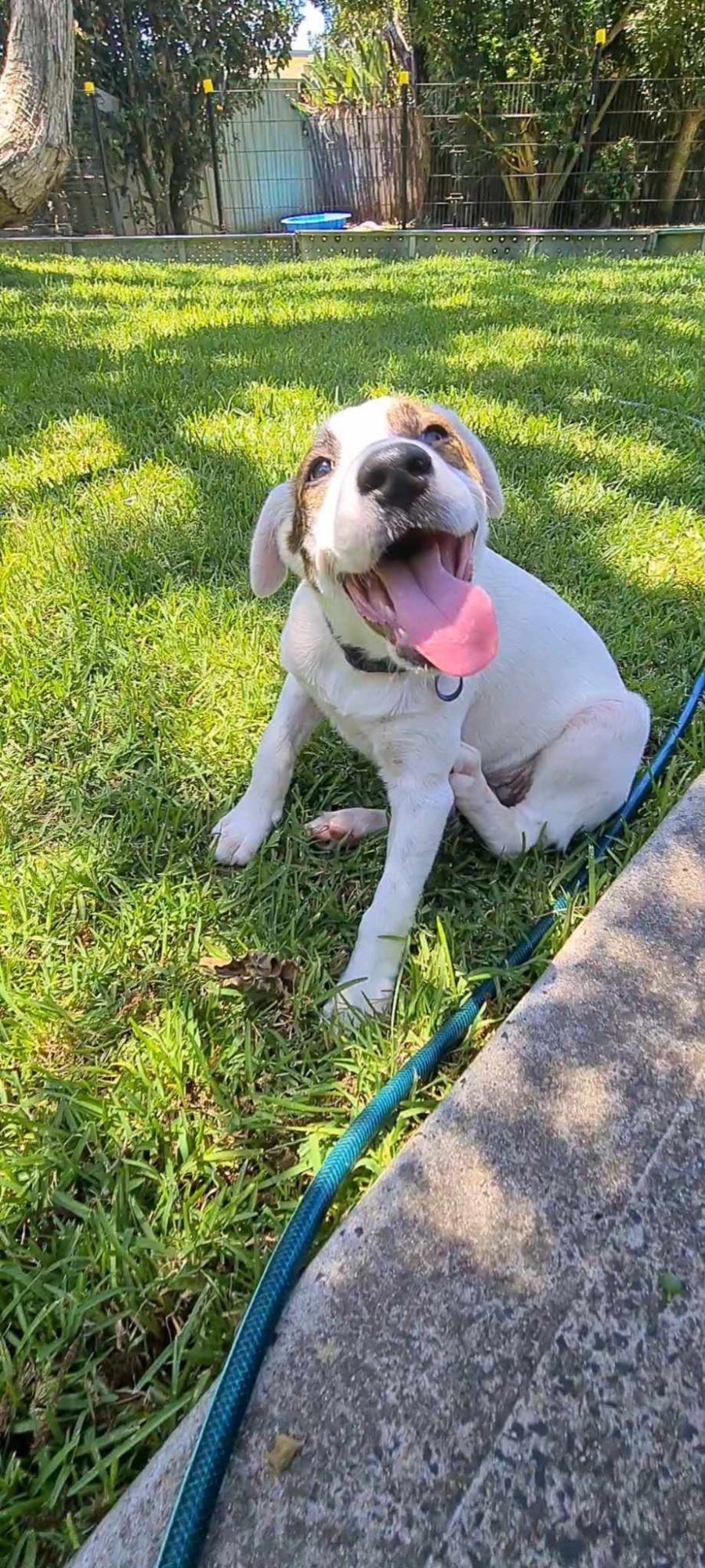 She loves the outdoors and can be left for hours with her toys and chew sticks.