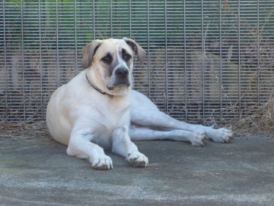 Hi my name is Kevin "Big Kev" I am extremely affectionate sweet natured young man, my dream home is the be a big member of the family with teenage children or a active sole mate as I have energy to burn, I am ok on lead & the car, fully house & create trained, love swimming & FOOD of any type, enjoy chilling on the lounge watching telly, I will make a very loyal companion to that very special someone or family, because of my rough start in life I can be a little defensive to other animals at first you will need to be patient with me, I dislike being left alone I get scared but my carer says I am a gem to have in your life. Big Kev being a large puppy "they say I am large but I think I am only small & think I can be a lap dog" will need to continue with my training. If interested in adopting me please call Lynne on 0425267391 an adoption fee applies. Location Tomerong NSW. I am a Dane x Wolfy X Mastiff 8 months old.