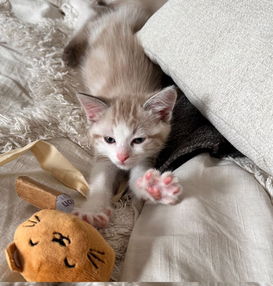Playtime is a real treat with Willow. Small cardboard retreats are a favourite, and a good round of hide and seek is a great way to end the day. Willow is also fantastically house trained for such a young age, with good manners and great respect for surroundings.