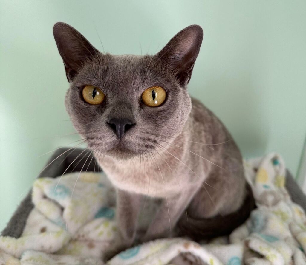 Meet Osiris, the charismatic Burmese with a personality as distinctive as his breed. This vocal and outgoing feline is always ready for a chat, making him the ideal companion for those who appreciate lively conversations with their four-legged friends. Osiris is not your average cat - he's a social butterfly with a charming demeanor that will captivate your heart. His lovable nature and affectionate disposition make him a perfect match for someone looking for a chatty and interactive companion.