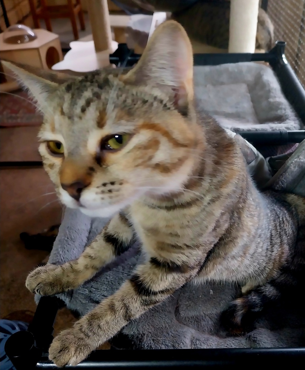 He loves to surprise his siblings by hiding then pouncing when they least expect it.