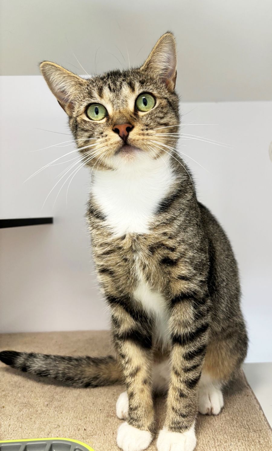 Ruby would excel in a peaceful home environment, preferably with a confident and friendly feline companion who can guide her and help her become her confident self. She appreciates the serene company of other cats and would benefit greatly from their mentorship and camaraderie.