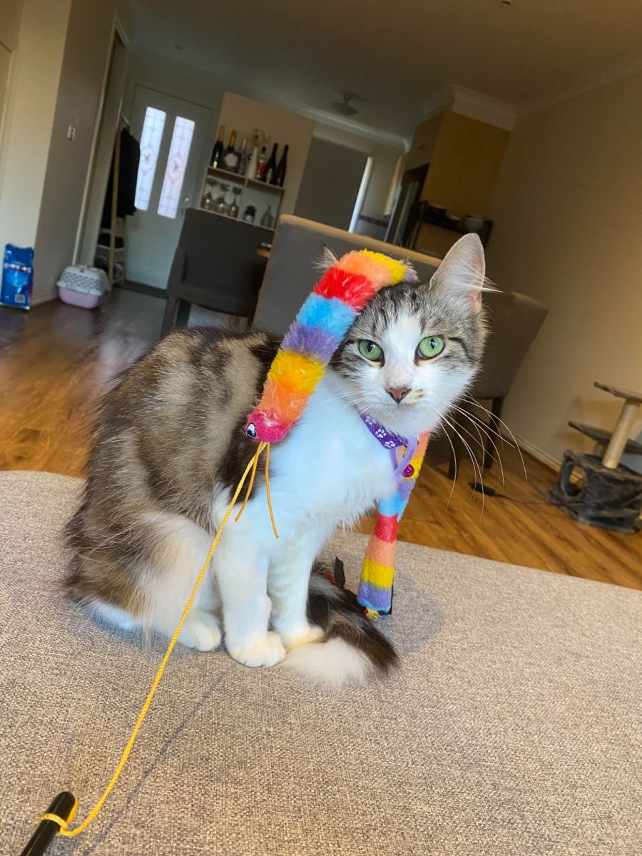 Despite having a very soft and gentle meow, Bonnie isn't a cat who uses her voice excessively. Instead, she expresses her contentment in adorable physical ways, such as purring or getting delightfully playful.
