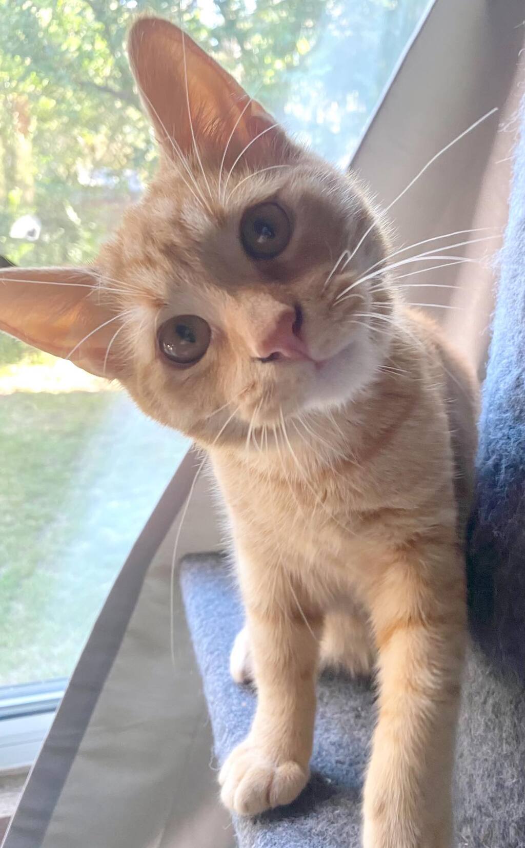 His start in life as a tiny kitten was a tough one so he will thrive best in a quiet indoor home.
