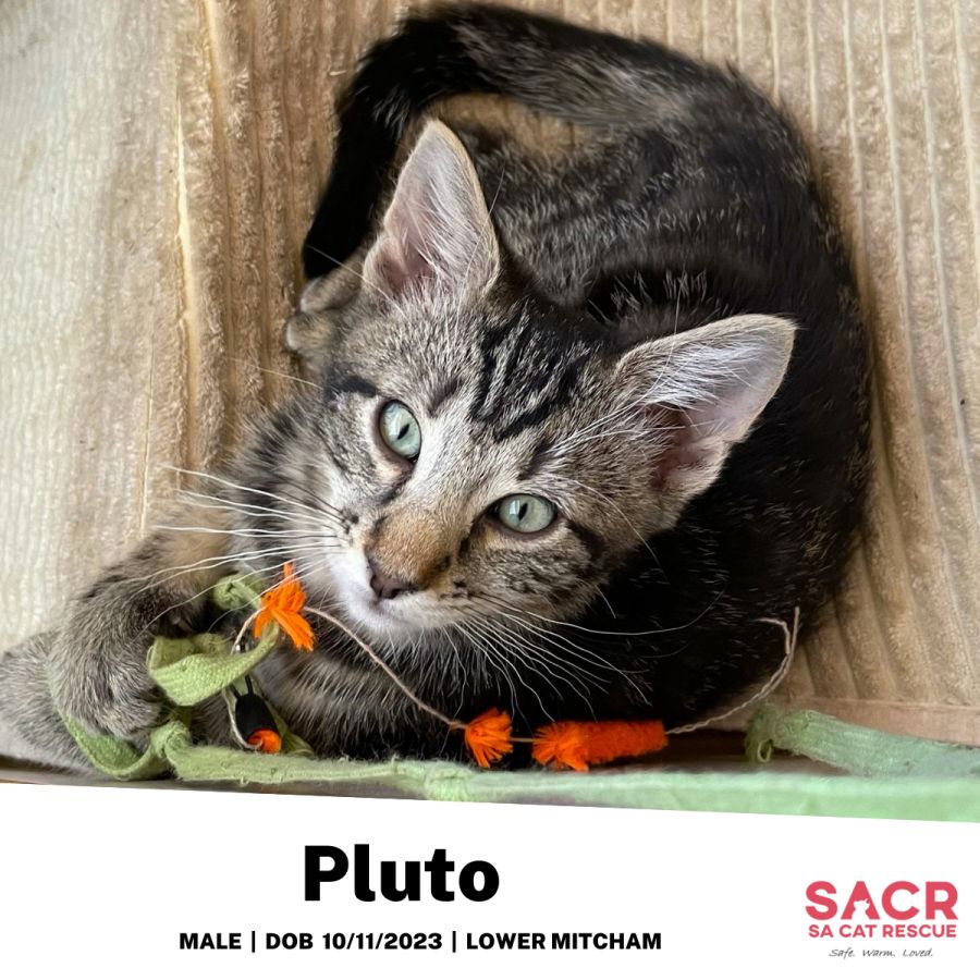 Pluto’s adoption fee is $180 which includes desexing, microchipping, parasite prevention, and initial F3 vaccination.