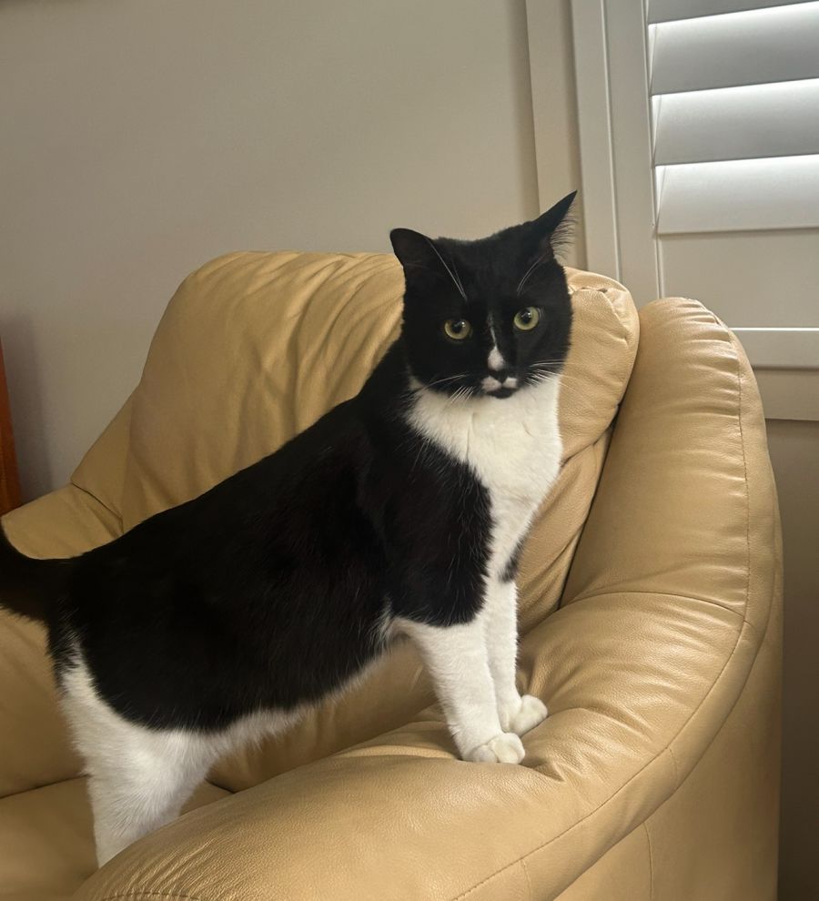 Meet the remarkable Maloo! A playful, curious, and friendly Tuxedo cat. Maloo, at 2.5 years old, is the epitome of a young, energetic, and thoroughly social cat. This handsome gentleman was rescued as a very young kitten alongside his two siblings. He has spent his formative years in a warm, loving environment full of plenty of cuddles and playtime with young children.