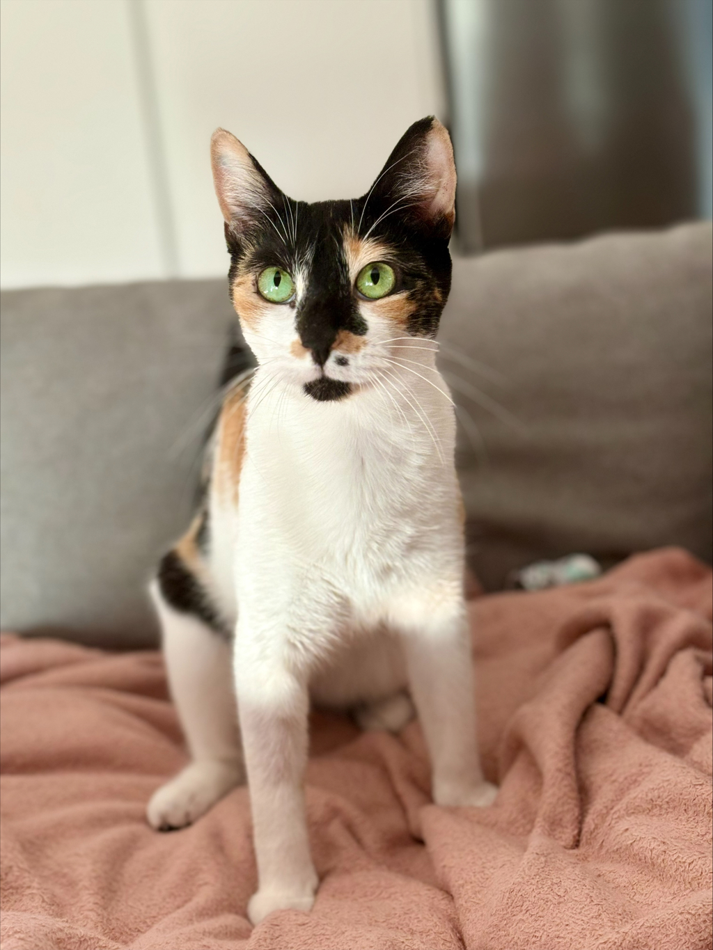 This sweet kitty actively seeks out cuddles and pats, particularly enjoying head scratches but content with affectionate gestures anywhere on her body. Cecilia alternates between snuggling up on the bed or lounging in another room, adapting her sleeping spot based on her comfort and the temperature.