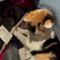 Once she starts to relax she will lean into your hand when you scratch her behind the ear and will lift her bum into the air when you scratch the base of her tail. It’s very cute. She will also allow you to pick her up and give her a hug.