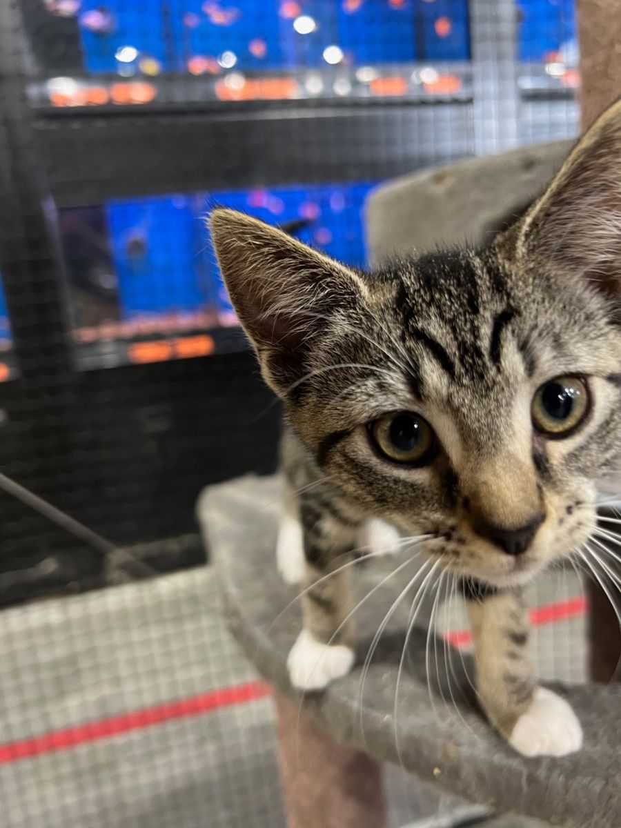 Tivali is a super friendly and social little kitten who greets you at the door and demands to be cuddled.