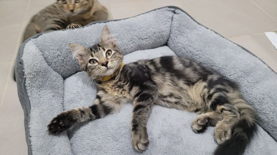 This little charmer is no ordinary kitten! Fluff stands out with his gorgeous long/medium fur and captivating brown tabby markings. He's a playful explorer, always ready to chase after feather wands with boundless energy. 🪶 But when it's time to relax, he loves nothing more than flopping on his back for some deep, undisturbed sleep.