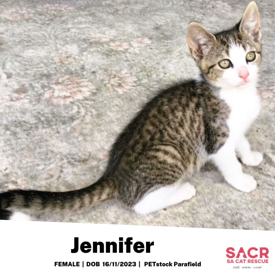 Jenniferโs adoption fee is $180 which includes desexing, microchipping, parasite prevention, and initial F3 vaccination.