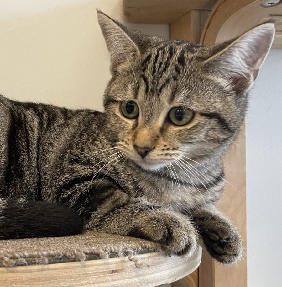 Dancer is a super-cute 3 month-old female brown stripped tabby kitten who came into SAFE’s care with her mum and three siblings. She is playful but quite reserved.