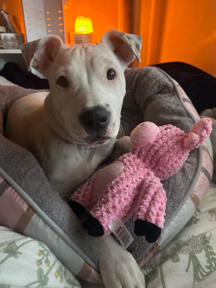Hi! I'm Juno. I am the prettiest and sweetest staffy pup you will ever lay eyes on. I love absolutely everything and cuddles are my favourite thing. I recently ended up in the pound and my family never came to pick me up. I then found a home which I loved dearly but unfortunately had to come back as I wasnt allowed to be there anymore and everyone thought it was best for me to have another chance at finding my furever home.
