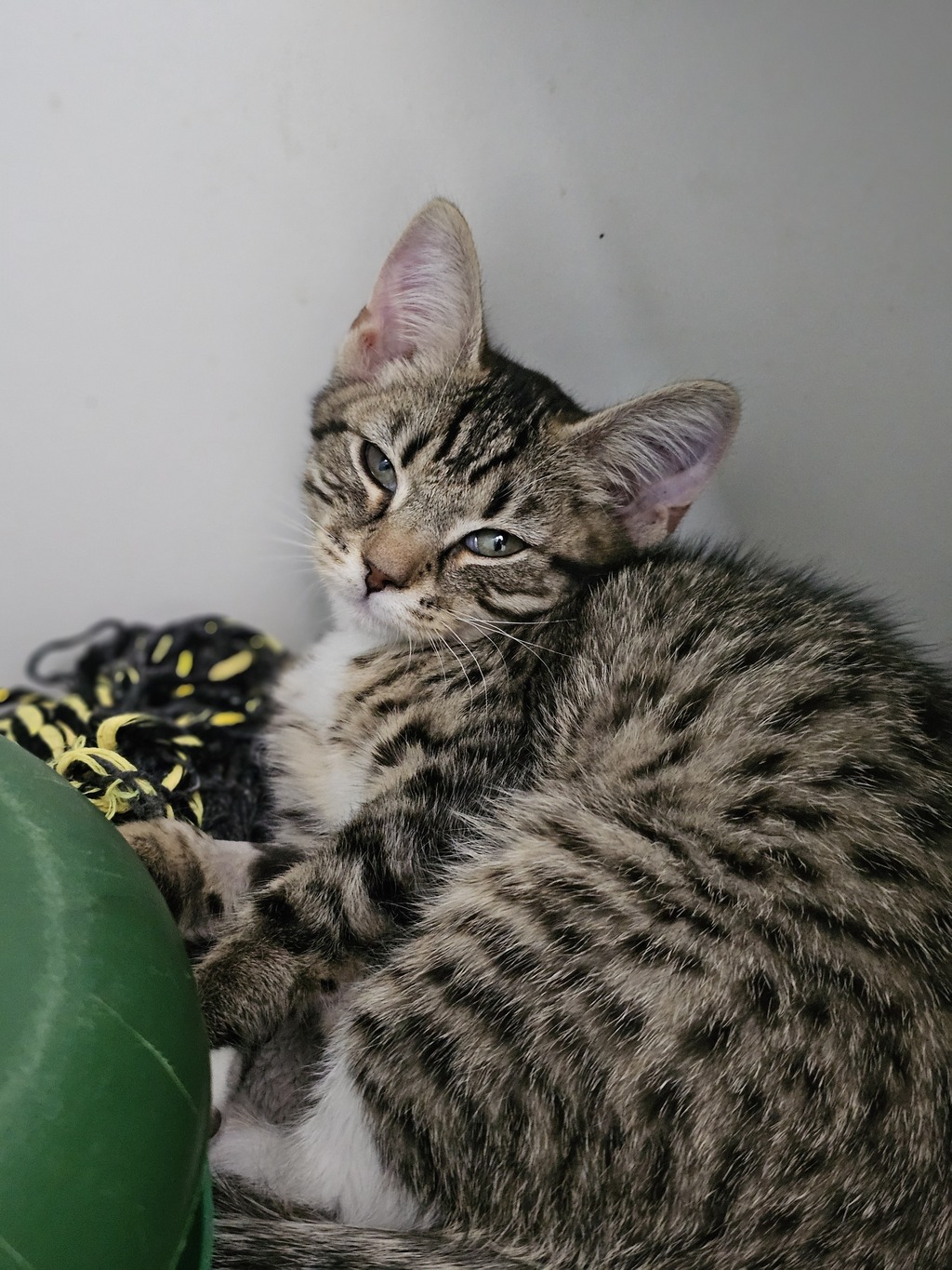 Hey there, I'm Ringtail. I'm a friendly and affectionate kitten who would suit most homes! My playful paws are always ready to pounce on anything that moves. I love playing with wand toys and mysterious shadows on the wall! When I'm finished playing, I love nothing more than finding a warm lap to curl up in.