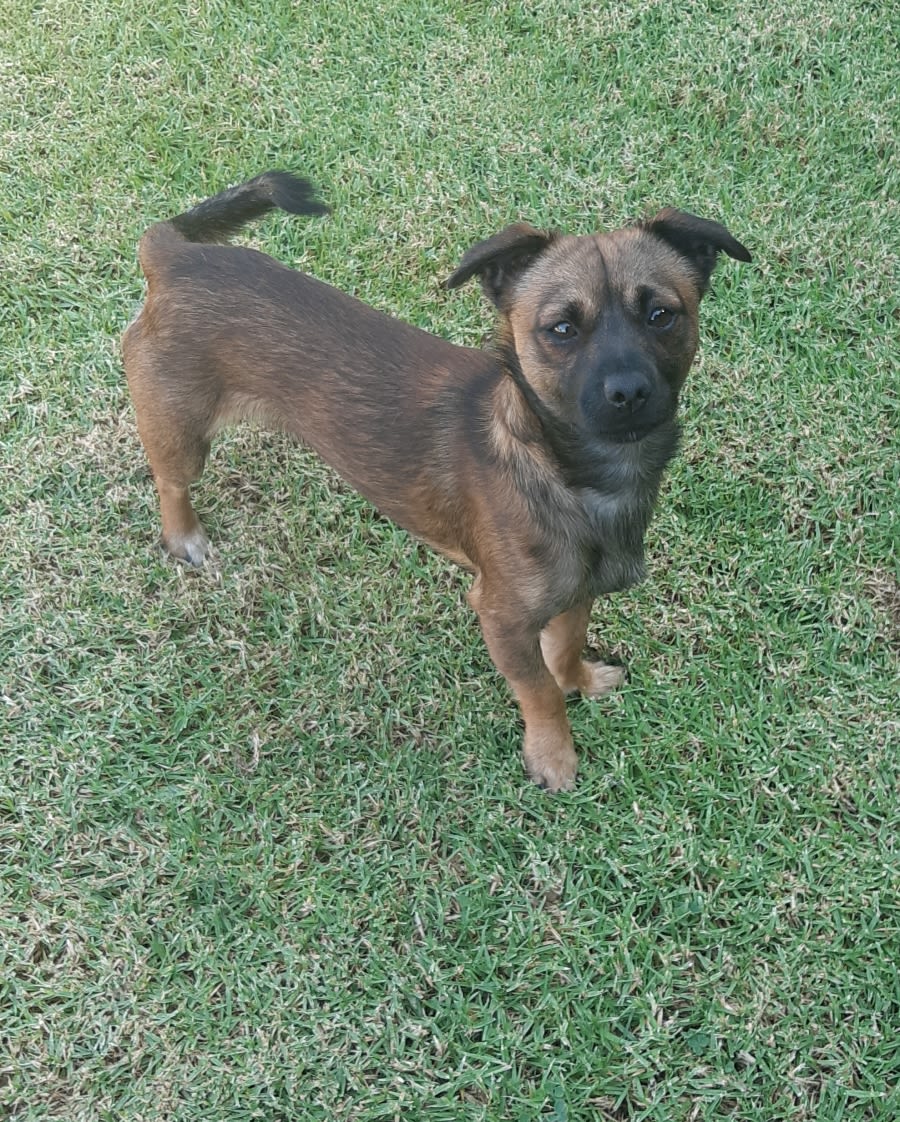 Rufus likes to sit on the couch and generally be near his people but also likes to hang around outside on a nice day. He will have a play with a ball but isn't obsessed with it. Rufus has been sleeping on the end of our bed like the good boy he is; did I say he's a good boy?