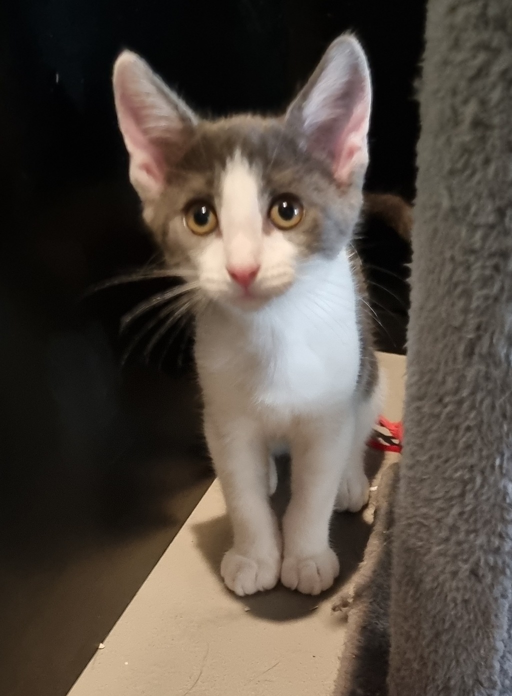 Hi there, I'm Twix! I'm just a kitten, but I've got a big personality. I love to play and explore - there's so much to discover! I'm a bit of a goofball, always ready to make you laugh with my antics. When I'm not playing, I'm a sweet, cuddly companion who loves to snuggle. My energy might be high, but I promise it's all in good fun. I'm friendly with everyone I meet, always ready to make a new friend. I'm just a kitten full of life, love, and laughter, waiting for my forever home. Adopting me means endless giggles, warm cuddles, and a curious little partner in all your home adventures!