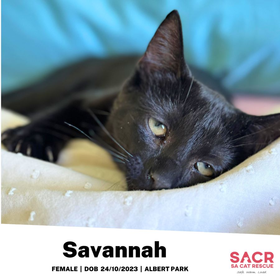 Savannah’s adoption fee is $180 which includes desexing, microchipping, parasite prevention, and initial F3 vaccination.