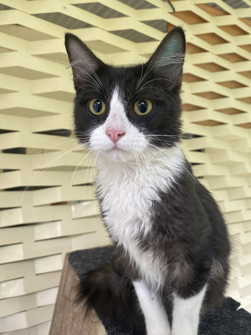 the black and white bundle of fur you've chosen to be your new feline friend. He's not demanding in any way, and has lived with dogs, cats and children, however needs extra love and reassurance. Chico's purr-fect home is one where he is loved unconditionally, kept well fed and cared for whilst also being provided with a safe INDOOR lifestyle. If you're seeking a feline friend who's is delightful, consider welcoming Chico into your home for a lifetime of shared adventures and endless pats!