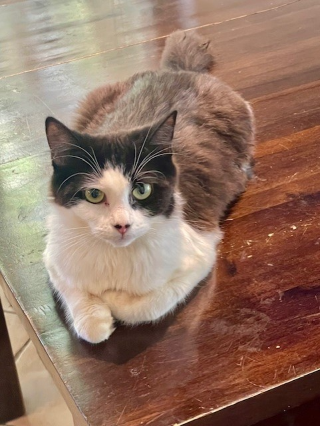 Taylor is a petite, fluffy black and white cat with mesmerizing green eyes. Her soft fur is a delightful mix of ebony and ivory, adding to her undeniable charm. Despite her dainty appearance, Taylor exudes confidence and grace in every step she takes.