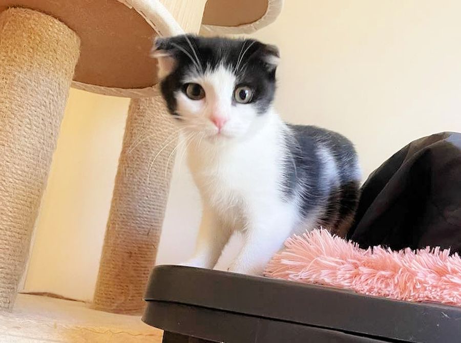 While she is a happy, bouncy kitten, Miss Moo still has Scottish Fold genes and there is the potential for this to cause cartilage growth in places it shouldn’t. Her new family should be on the lookout for any joint pain that Moo may experience as she gets older and ensure she’s kept at a healthy weight. If you think you have what it takes to be this incredible little lady’s forever person and you’re sure you don’t ever want to be bored again, Molly Moo could be for you!