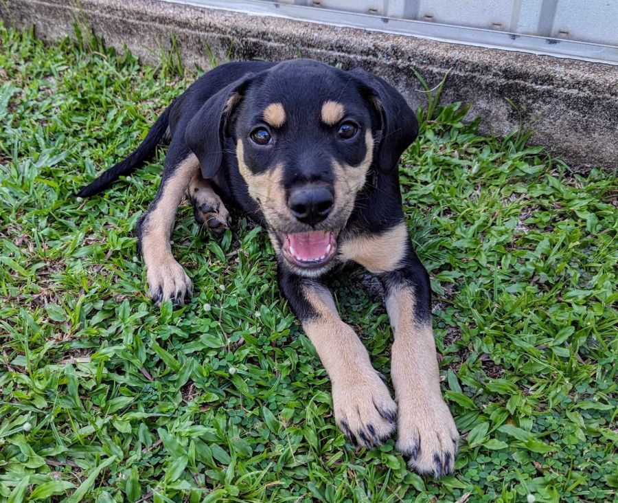 Pan is a handsome young man who loves life and just goes with the flow. He has blended into his foster family who have two dogs, two cats, kids and adults. Pan happily sleeps in a crate at night and hangs with his furry foster siblings during the day until the humans come home. He is a well rounded pup who is ready for adventure or a cuddle. He has been doing well with toilet training and learning his puppy manners but will need someone who will continue his training