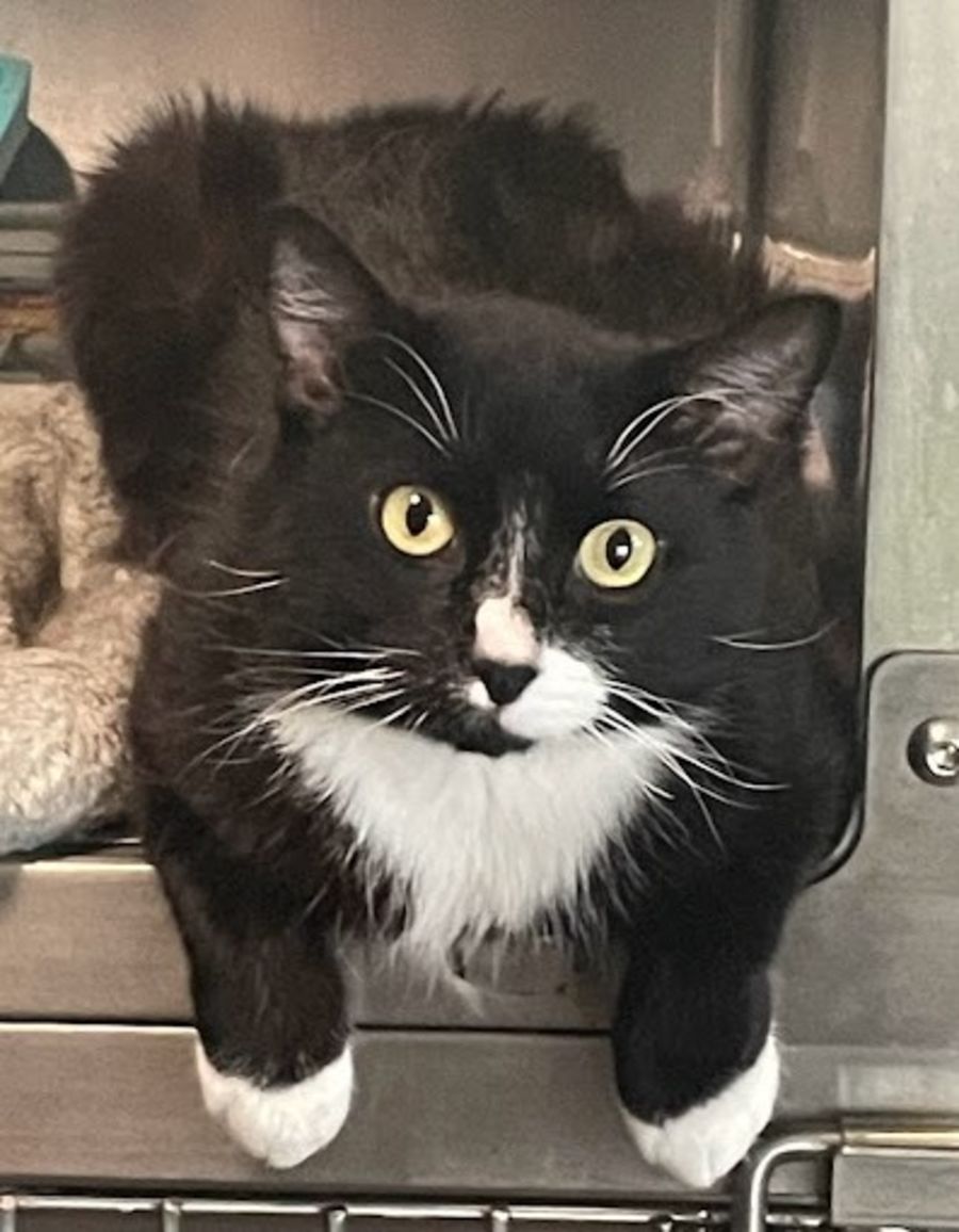 In a nutshell then - handsome young cat, equipped with own formal dinner garments, a great sense of fun, the patience of a saint, and particular interests in snuggling, playing, and eating - seeks a person or people with a view to a lifetime of devotion and cat worship.