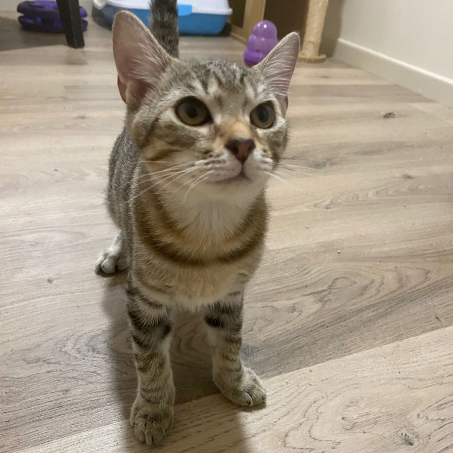 I eat well for a growing kitten and will politely (yet loudly!) let you know when it's dinner time. I am litter trained and am a tidy boy with it too. I have seen the vet, passed all my health checks, been desexed, vaccinated & microchipped, and now I'm ready for to find my forever home! I really am a wonderful little cat who will fit in with pretty much any family.