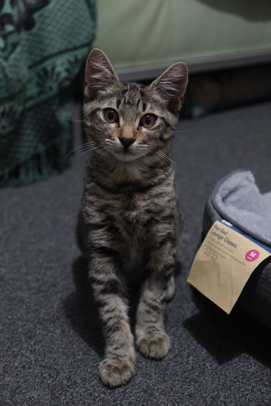 Mimi is a little fire cracker, so much energy, loves to play with her brother Niko and sister Cleo. She’s a bit of a bossy boots, and loves a good chin rub, a very curious kitten who loves to chatter at the birds through the window, literally always the last one standing when it comes to playing, she can play all day long. She loves toys on strings, sneak attacking her siblings. She also uses her paws a lot, will pat you with her paw when she wants something and will also pat your hand away if she’s not in the mood for pats. She’s such a fun little character with lots of energy.