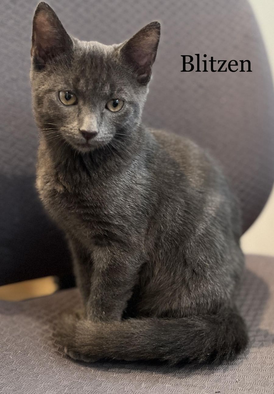 Blitzen wil be your snuggle buddy. He is good with children and used to other friendly pets. He is currently being fostered with his brother Vixen.