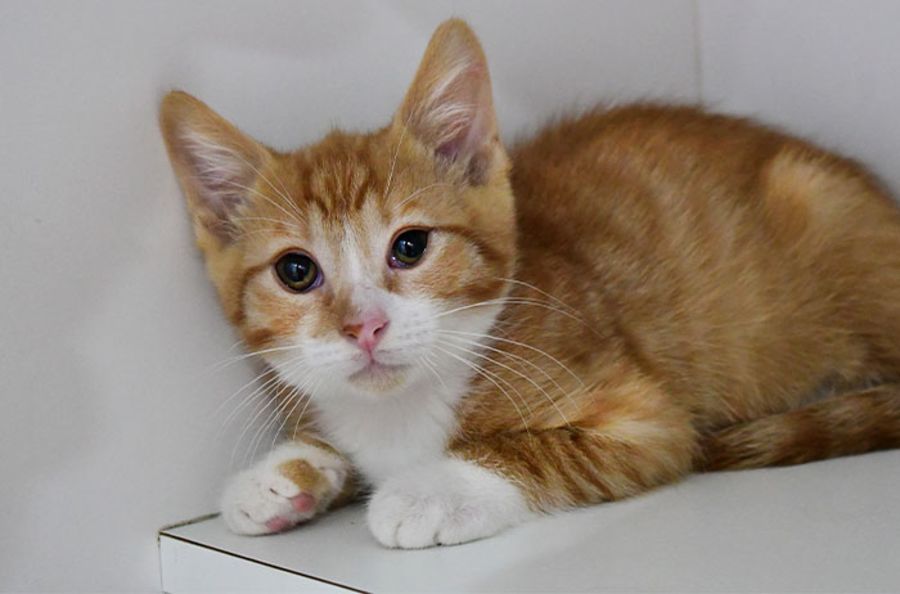 Just like all kittens, he would love a cat tree to climb on and scratch, and an assortment of toys to play with. He should be fed kitten food multiple times a day to ensure that he grow up big and strong.