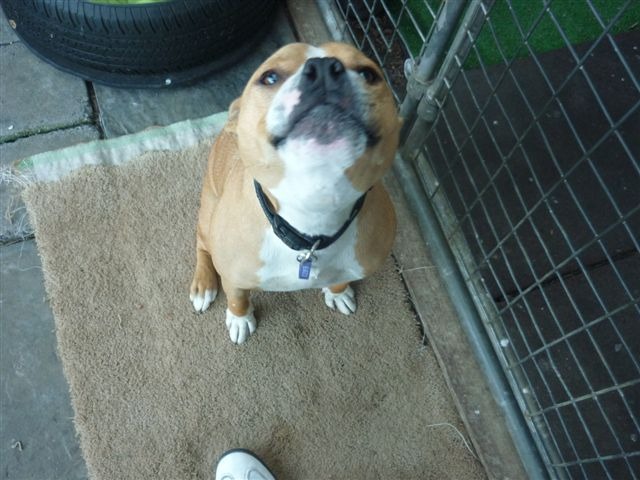 Yeaaa i've gone to my new home with a family and we all love each othe very much and now i've got children to play with, great eh. . . Hi my name is boss and i'm no more than 2 years old, i'm a very active boy but well behaved. Linda thinks i've had a bit of training but i need more. I love to talk, linda & i have long conversations together. I run in the paddock with female staffords each day but i can be boisterous. I am a top size stafford and for some reason my tail has been chopped off, so i've got a tail like a boxer
