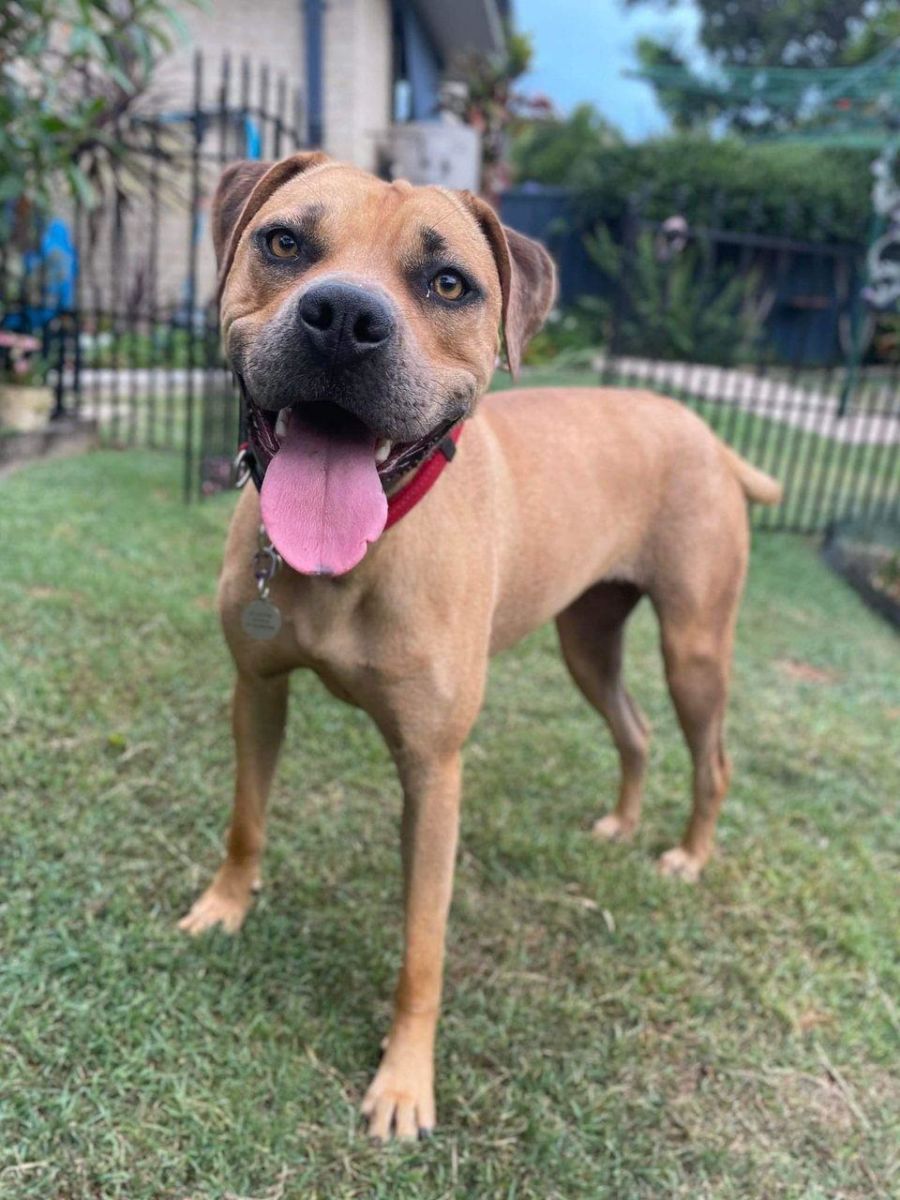 Most of Jeli’s life she was chained up and received little to no training. She is now absolutely loving all the attention she is receiving. She is currently learning not to jump up on you for affectionate and is responding very well.